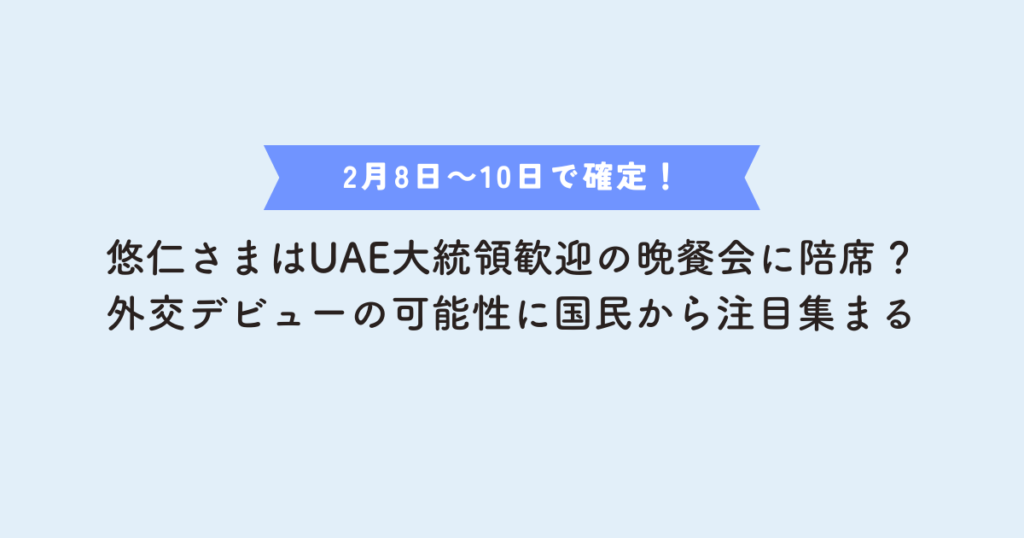 2月には国賓としてUAEのムハンマド大統領が来日されます。天皇陛下との会見や晩餐会が予定されていますよ!