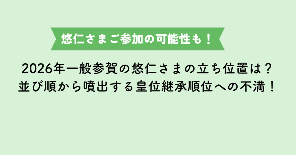 【一般参賀|2026】悠仁さまと愛子さまの立ち位置は?継承順位に疑問の声