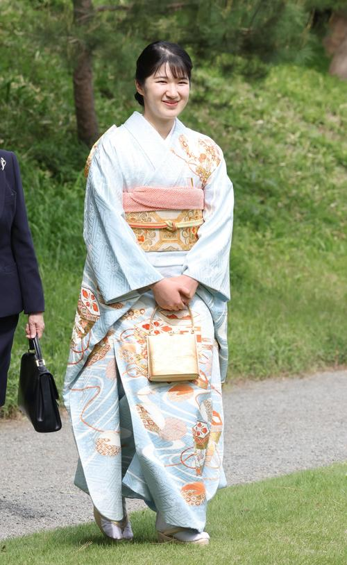 爽やかな水色に桜の柄が春らしく、優雅な愛子さまにぴったりでした!