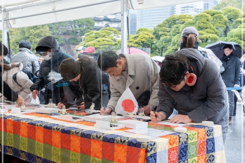 記帳は12:30~15:30までに宮内庁庁舎前の特設記帳所で記名または名刺を渡すことが可能です。