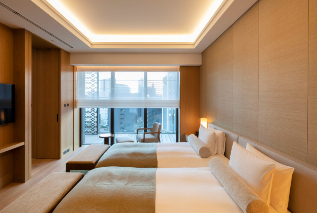The Okura Tokyoのヘリテージウイングは、客室そのものが“和の美意識×ラグジュアリー”で設計され、スチームサウナやジェットバスなど「部屋で整う」設備が強みです。