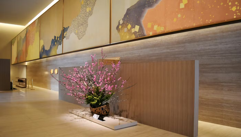 公式ページの説明では、ヘリテージウイングのロビーは、床や天井に過度な装飾を施さず、空間そのものを床の間に見立てたような静けさを演出しています。